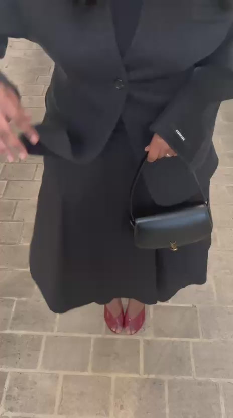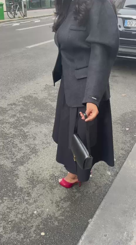 Un blazer noir à la coupe structurée, qui sculpte la silhouette tout en gardant une allure sophistiquée. Son design épuré apporte une élégance intemporelle, parfaite pour les looks minimalistes et raffinés.