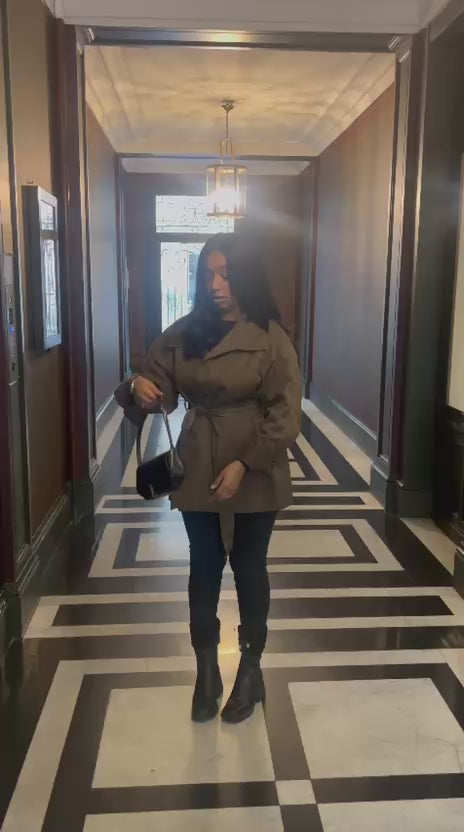 Une veste marron ceinturée, à la coupe ample et moderne, pensée pour structurer la silhouette sans perdre en confort. Ses revers contrastés et sa matière en font une pièce élégante et pratique, parfaite pour un style affirmé et chaleureux au quotidien.